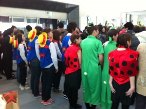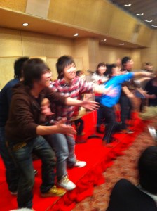 歌いながらエールを送りました。