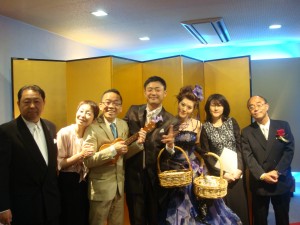 ウクレレでお祝いの歌を弾くお母様。