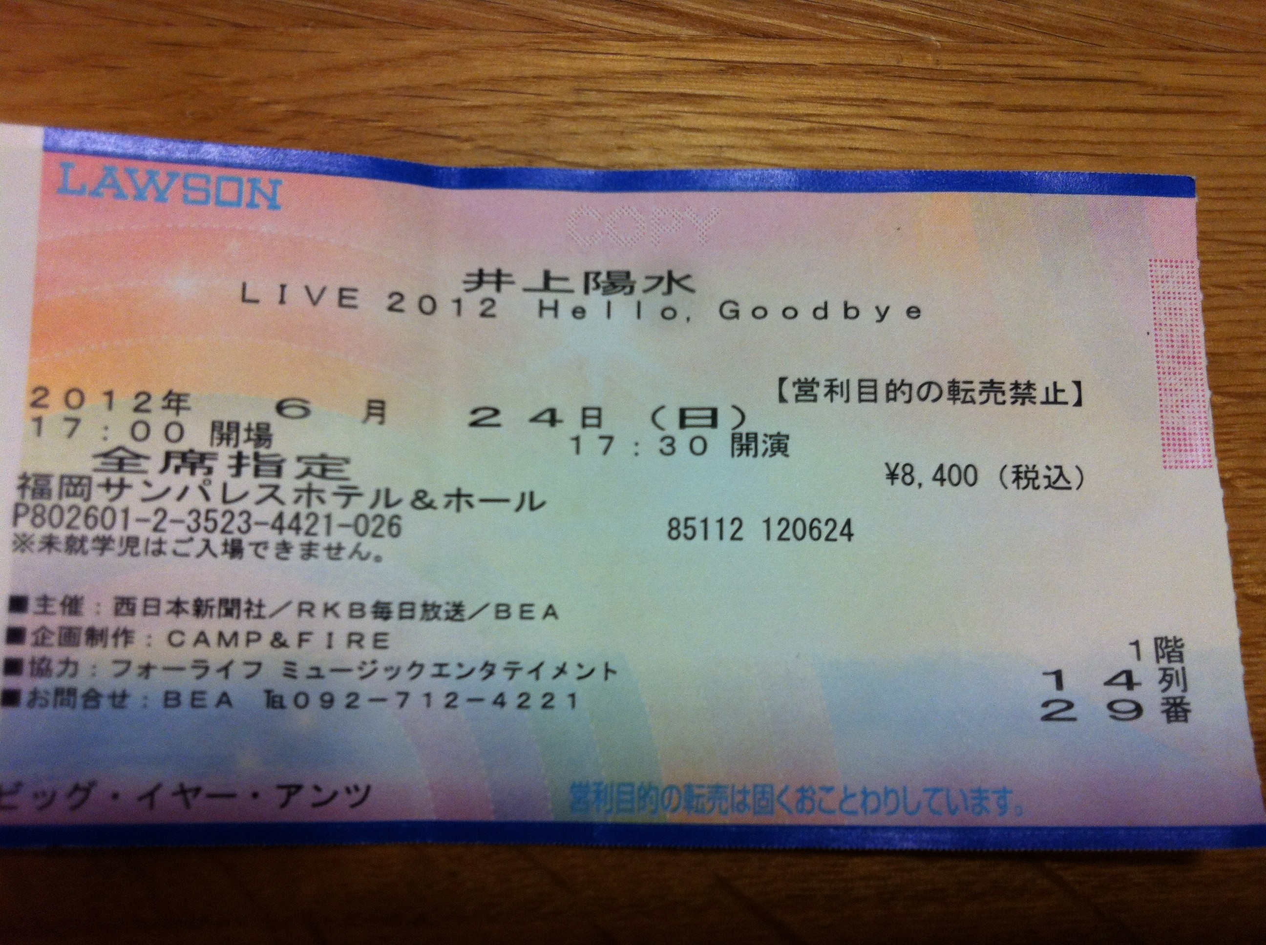 夕方からは、井上陽水LIVE.
