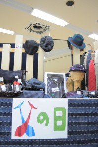 もんぺか、絣のハンチングを