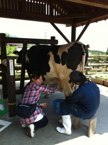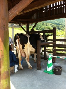 ホルスタインの乳搾り。